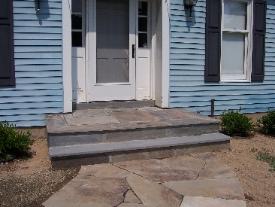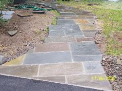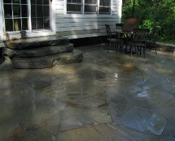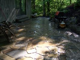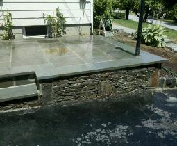| Bluestone from Pennsylvania and New York is commercially known as bluestone or Pennsylvania Bluestone. These are a group of sandstones defined as feldspathic greywacke. The sand-sized grains from which bluestone is constituted were deposited in the "Catskill Delta" during the Middle to Upper Devonian Period of the Paleozoic Era, approximately 370 to 345 million years ago. If the initial deposit was made under slow moving water the ripples of the water action on the sand or mud will be revealed. This deposition process may be seen today at any ocean beach in shallow water or in a stream bed where conditions allow it to be observed. The term "bluestone" is derived from a deep blue-colored sandstone first found in Ulster County, New York. Bluestone from various quarries right here in Ulster County have been historically world renowned for it's durability, color and quality. Being native to the Hudson Valley, and a resident of Ulster County, New York, it is only fitting that we use natural materials from this area. We are bringing a small piece of the natural wonder of our valley to your home, by using this bluestone in our projects. |